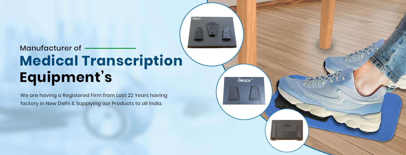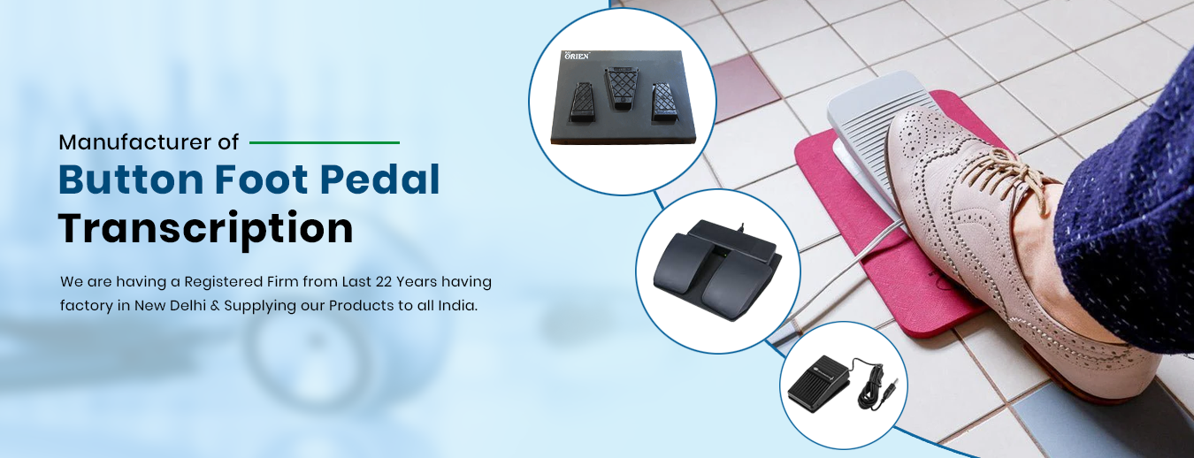 Raj Orien Industries is Oldest Manufacturer & Suppliers of foot Pedal Used for Legal / Business / Medical Transcription it is attached with computer by this type of pedals transcriptionist transcribe voice files by controlling play / Rewind / Fast Forward Functions from Feet. We are having a Registered Firm from Last 10 Years having factory in New Delhi & Supplying our Products to all India. Our esteemed concern is to serve transcription industry.